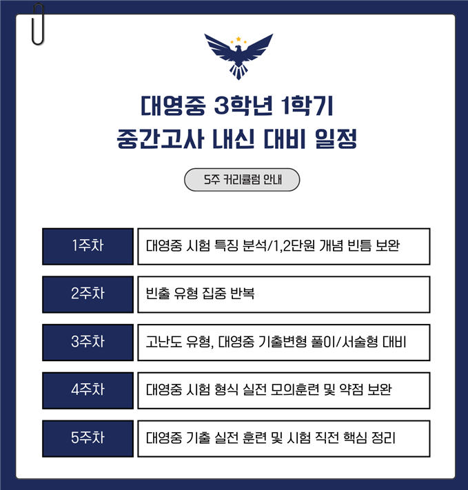 [대영중 수학학원] 독수리수학 대영중 3학년 1학기 중간고사 내신 대비 수업 안내