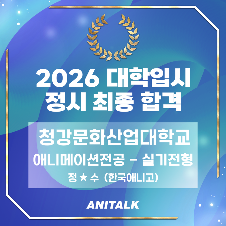 2026년도 청강대 정시합격 ★ 강동 애니톡 만화애니입시전문학원