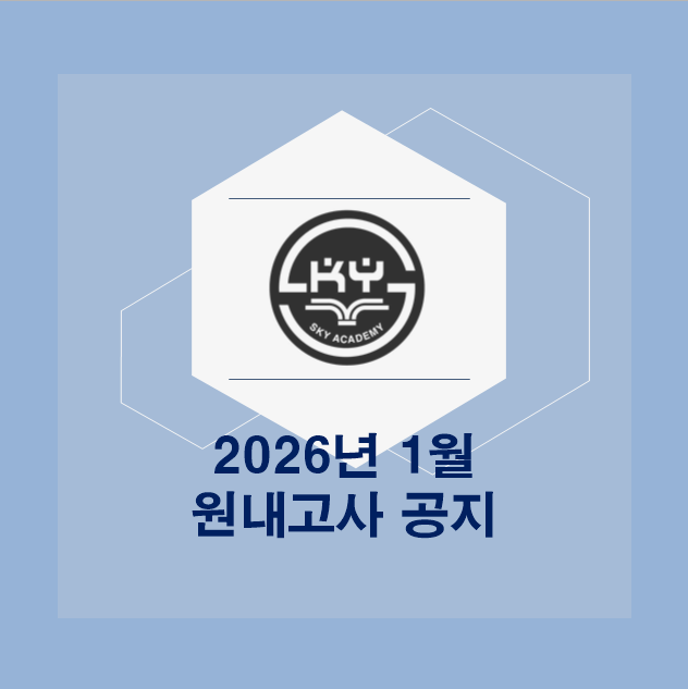케이투스카이학원 2026년 1월 원내고사 공지 1/31(토) 초등부, 중등 1~3학년 학생들을 대상으로 수학, 영어 원내 고사를 시행합니다. 수학 원내고사 시험 시간 및 범위 ▶시험 날짜 : 1/31(토) ▶시험 시간 초1~초5 : 오전 10:30 ~ 오전 11:20 초6 : 오전 11:30 ~ 오후 12:20 중1 : 오후 12:30 ~ 오후 1:20 중2 : 오후 1:30 ~ 오후 2:20 중3 : 오후 2:30 ~ 오후 3:20 ▶ 시험범위 첨부 안내문 참고 영어 원내고사 시험 시간 및 범위 ▶시험 날짜 : 1/31(토) ▶시험 시간 초1~초5 : 오전 11:30 ~ 오후12:20 초6 : 오후 12:30 ~ 오후1:20 중1 : 오후 1:30 ~ 오후 2:20 중2 : 오후 2:30 ~ 오후 3:20 중3 : 오후 3:30 ~ 오후 4:20 ▶ 시험범위 초등부....... <img src="https://blogthumb.pstatic.net/MjAyNjAxMTdfMjc0/MDAxNzY4NjUzMTgxMjE1.2uHb9XXlEe0hUkuorRUIU09I6xP6nbdOiYCJ0Taa_Zwg.TybPi45boWQCCpIyL6sLhwzfxj-KlqmrqOLMVKFohq8g.PNG/image.png?type=s3" />