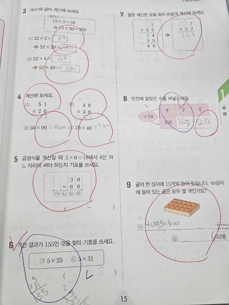 (박*린) 초등 3-2 수학리더 기본+응용 1단원 곱셈 학습 기록