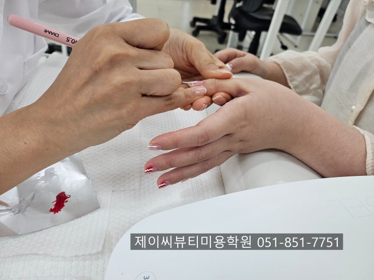 안녕하세요. 제이씨뷰티미용학원입니다~ 며칠 전 학원에서 진행된 네일 국가자격증 실기 모의고사 2교시 젤 매니큐어에 대해 소개해드리려고 합니다! 이번 2교시 젤 매니큐어 과제는 시험과 동일하게 당일 랜덤 출제로 진행되었으며, 선 마블과 부채꼴 마블 중 선택하여 모의고사를 진행했습니다. 2교시 젤 매니큐어, 특히 마블 과제는 시간 관리가 매우 중요한 과제입니다. 총 35분이라는 제한된 시간 안에 ✔ 요구된 디자인을 정확히 표현하고 ✔ 깔끔하게 마무리하는 것이 핵심 포인트입니다! 특히 시험장에서 미작(미완성)이 많이 발생하는 과제가 바로 2교시인데, 그중에서도 부채꼴 마블은 레드 풀코트를 바른 뒤 마블을 진행해야 하기....... <img src="https://blogthumb.pstatic.net/MjAyNjAxMTJfMTc0/MDAxNzY4MTkzMzE0Mzg0.i7hLldxcVBSXNhCJfbZC9x9BxiIpjs8gcNHMzymmCNwg.FrexeI_uoTg7uoqi9HSQ-y6gpQee41Yw3yPJUHtrfJcg.JPEG/10.jpg?type=s3" />