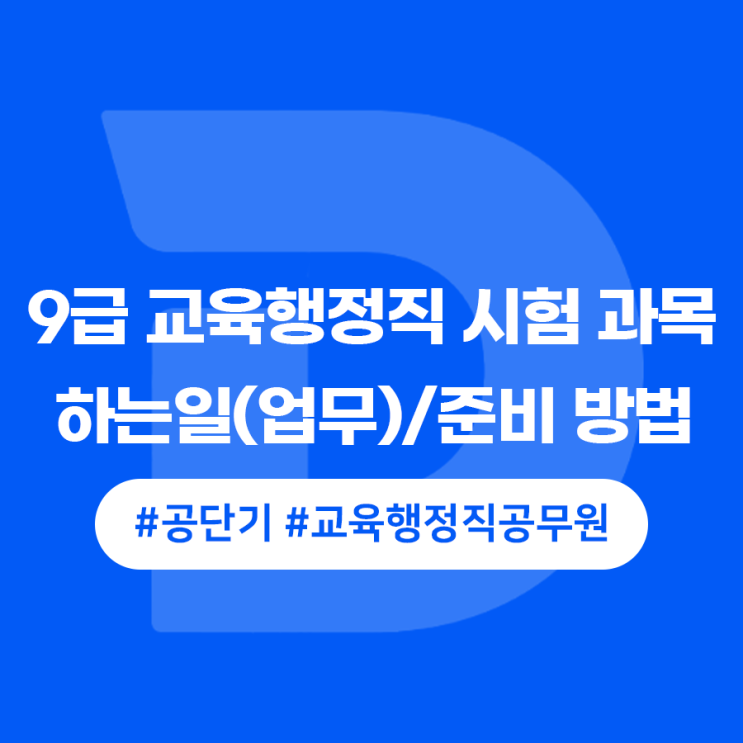 9급 교육행정직 시험 과목/하는일(업무)/준비 방법|교육행정공무원 오늘 포스팅에서는 9급 교육행정직공무원 시험에 대해서 살펴볼 것이었어요. 교육행정직공무원이란 교육부, 교육청, 국공립 초·중·고등학교 등에서 교육 관련 기관에서 행정 업무를 담당하는 공무원을 말했어요. 흔히 교육행정공무원으로 불렸어요. 시험에 출제되는 과목이 어떻게 구성되는지, 난이도는 어느 정도인지, 어떻게 준비해야 하는지와 더불어 합격 후 근무지는 어디인지, 하는일은 무엇인지까지 모두 알려드리도록 했어요. 9급 교육행정직공무원 시험은 객관식 문제가 출제되는 1차 시험과 구술 질의가 이루어지는 2차 시험으로 구성됐어요. 1차 필기 시험 유형은 객....... <img src="https://blogthumb.pstatic.net/MjAyNjAxMTZfMTAy/MDAxNzY4NTMyNTIzOTY4.zxwmnpdQciQk_utbIe9myN43xIF7-zjNOULUCcB5yVUg.1VgASKfcRNpEfetojbxJgsLvzOlYpXgcrOJyp1XTWSwg.PNG/1.png?type=s3" />