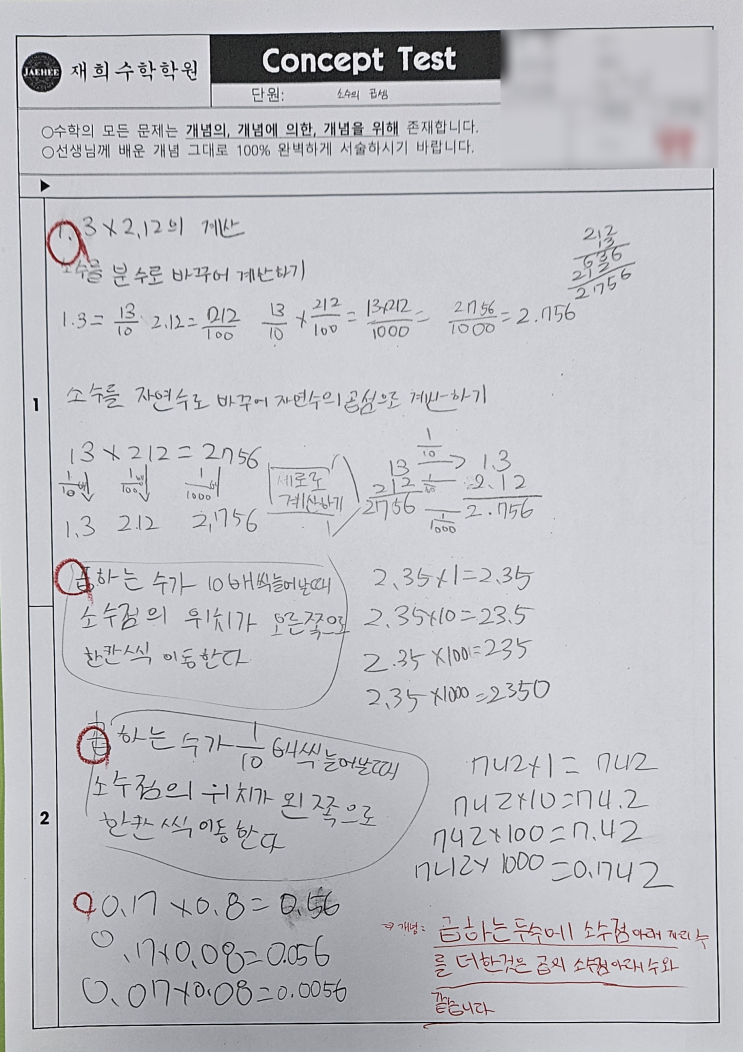 [침산동 수학학원] 재희수학학원 1월 13일 개념테스트
