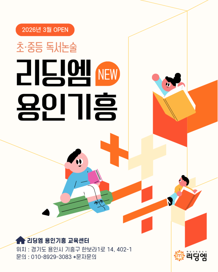 용인 보라동 독서논술 찾는다면? 리딩엠 용인기흥 교육센터 3월 오픈