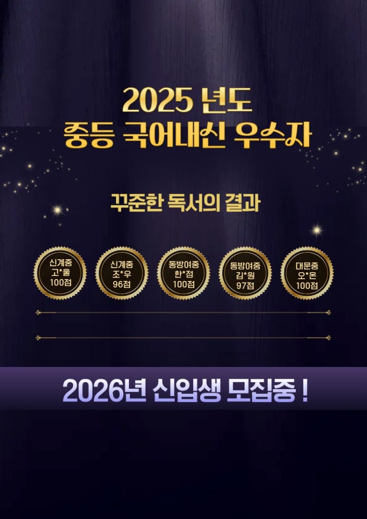 [복수동수학학원][복수동영어학원][복수동국어학원][복수동리드인] 2025년도 중등 국어 내신 우수자