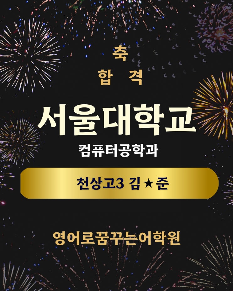 안녕하세요? 파닉스부터 수능까지 똑똑한 엘리트 영어코스 무거동영어학원 영어로꿈꾸는어학원입니다. 오늘은 중3시절부터 저희 학원에서 수강한 천상고3 김O준 학생(이하 쭈니라고 칭함)의 서울대 컴퓨터공학과 정시 합격 소식을 기쁜 마음으로 함께 나누고자 합니다. 중3 시절 울산과학고 도전에 실패하고 그 땐 그리 큰 꿈을 갖고 있는지 몰랐지만, 쭈니는 처음 만났을 때부터 늘 성실했고, 자기 자리에서 묵묵히 최선을 다하는 학생이었습니다. 공부 전략부터 멘탈 관리까지 함께 보낸 시간들! 쭈니의 입시는 처음부터 쉬운 길만은 아니었습니다. 영어는 독해력이 좋은 편이었지만, 고등 내신에서 가장 중요한 문법이 많이 약한 편이어서 중....... <img src="https://blogthumb.pstatic.net/MjAyNjAxMzFfMTE0/MDAxNzY5ODM4NDg0ODI0.eRASmvcVdSWEi6BmgA2TSRodtpY-KO1hJF7DgNCJnf0g.fjvklb2D5j795MHHmKaH4Nu0_MShXWfsMVrLwptayLsg.JPEG/KakaoTalk_20260130_201108.jpg?type=s3" />