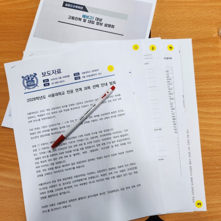 안녕하세요! 일로드수학학원입니다. 오늘은 벌써 작년이 되어버린 25년에 진행한 고교진학설명회현장을 보여드리려고합니다! 고등진학을 앞두고있는 중3학년 재원생 및 학부모님을 대상으로 진행되었구요 앞으로 적용될 대입정보까지 꽉꽉 채워넣은 자료와 메모할수있도록 펜까지 세팅완료! 인원이 좀 있어서 의자만으로 배치했습니다 :) 설명회가 시작되었구요 (원장님화이팅) ㅋㅋㅋㅋㅋ 대입 전형과 변화되는 입시내용으로 막힘없이 진행중이시구요 :) 주요학교별 특징 및 장단점을 이어 설명중이신 원장님ㅎㅎㅎ 2시간~2시간반정도 알차게 최대한 필요한정보위주로 꽉꽉채워 진행되었습니다! 참석해주신 재원생 및 학부모님들 너무감사하구요....... <img src="https://blogthumb.pstatic.net/MjAyNjAxMDlfMTk5/MDAxNzY3OTQ5MDU4MTM5.G70PGID-XHDrUPdD8mIyjxjKxAnYPWORcwxCHXeYa-Ug.cVyIVGrQWsz99a-XID5IkO4K9pdovLjd-KNgB96pi2Ug.JPEG/1.jpg?type=s3" />