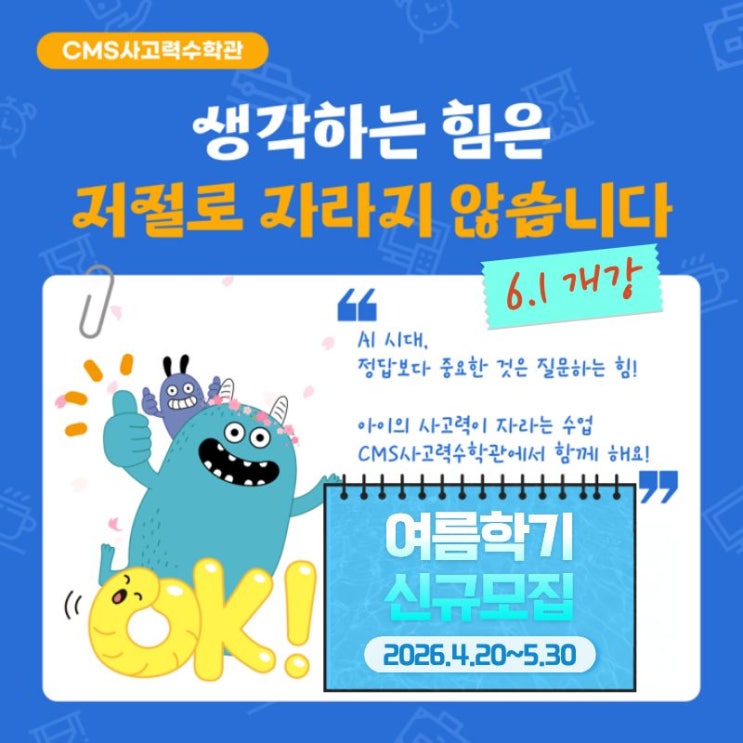 ▼▼▼▼▼▼▼▼▼▼▼▼▼▼▼▼▼▼▼▼▼▼▼▼▼▼▼▼▼▼▼▼▼▼▼▼▼▼▼▼▼ "사고력의 깊이가 성적의 높이" 차원이 다른 사고력 CMS에서 만나보세요! #득점력#문해력#경시 지금, 입학시험 레벨 테스트 예약하고 우리 아이의 실력을 확인해보세요! ↓↓↓↓↓ https://vo.la/CMSPC 전화 시험예약 문의 : 031-476-1288 <img src="https://blogthumb.pstatic.net/MjAyNjA0MDdfMTcz/MDAxNzc1NTYwNDMzNDg0.Imd4s-sjOCyPg2FaPUYkoTp4p0Hkj-vaep14bhSZQr8g.qqMzcgVLH_nuLvSFkJNVuAxtS2woZNu9NOiTCnVFFQgg.JPEG/%BF%A9%B8%A7%C7%D0%B1%E2_%B8%F0%C1%FD.jpg?type=s3" />
