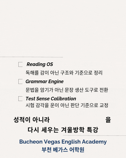 송내동 영어학원 성적보다 먼저 바꿔야 할 것 부천 베가스 어학원 겨울 방학 특강 RESET 프로젝트
