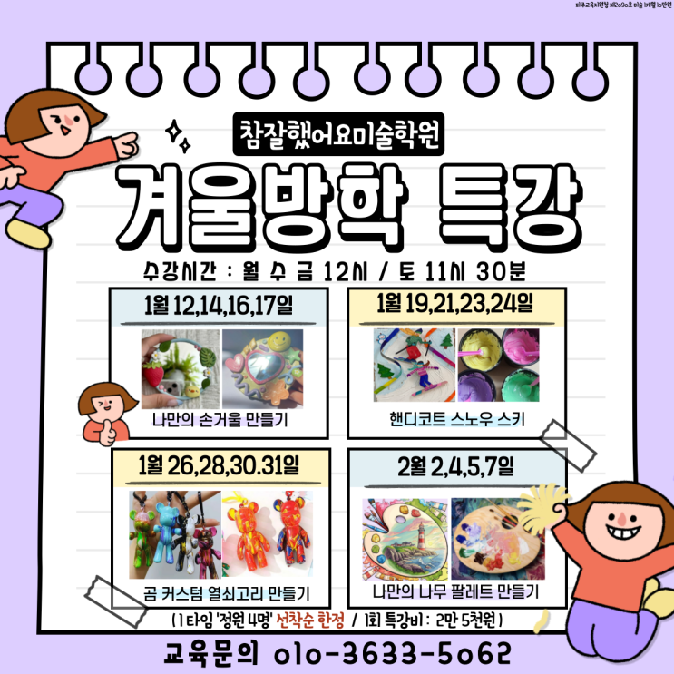 참잘했어요 미술학원:) 겨울방학 특강을 안내합니다