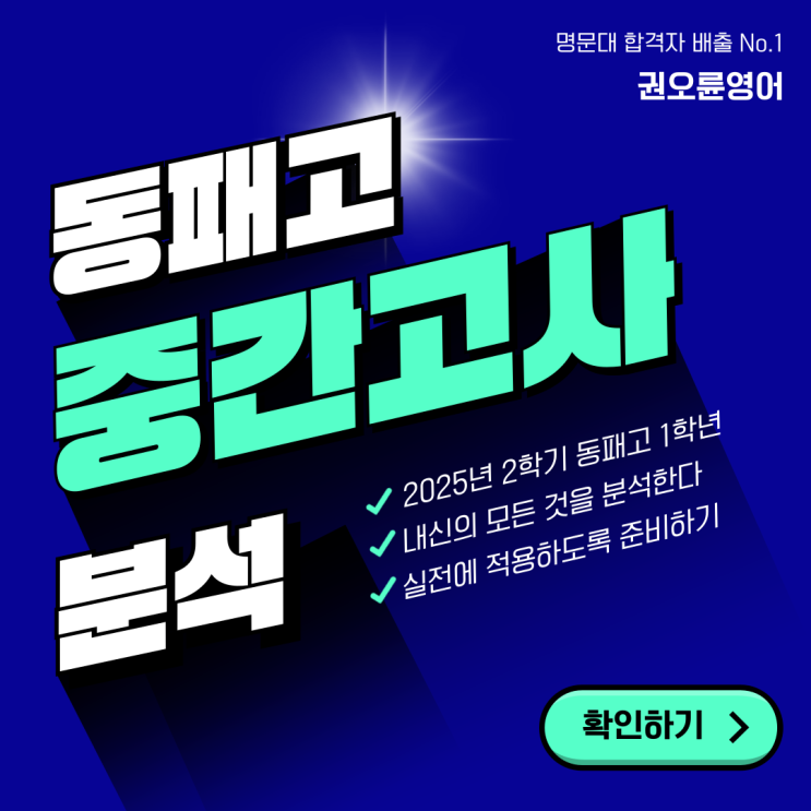 안녕하세요, 권오륜영어학원입니다 ! 오늘은 2025년 동패고 1학년 2학기 중간고사 분석 강의를 공개합니다. 이번 영상은 동패고등학교 2025 고1 중간고사 영어 시험의 핵심 출제 포인트를 정리한 분석 영상입니다. 시험이 끝났다고 끝난게 절대 아니죠 ! 다음 시험을 준비하기위한 정확한 학습 방향 설정도 중요한 학습 과정입니다. 동패고 내신, 권오륜 원장님이랑 출제 의도 정확히 분석하고, 날카로운 기준으로, 권오륜 영어학원에서 효율적으로 공부하자 ! ☎️ 031-935-6001 상담 및 문의는 언제든지 전화주세요♥ <img src="https://blogthumb.pstatic.net/MjAyNjAxMTZfMTA1/MDAxNzY4NTY5NTE3NTY2.8UbHzTl9ILziPI5ajtZDDiy6m6VMptdQ8yCCthsGzUYg.YL5rzfAOh8PLrjkdDi9-mqj5Yv_xKVJ_cxOwrd-meAkg.PNG/%B5%BF%C6%D0%B0%ED-%C1%DF%B0%A3%B0%ED%BB%E7-%B3%BB%BD%C5-%BA%D0%BC%AE-%BA%ED%B7%CE%B1%D7-001.png?type=s3" />