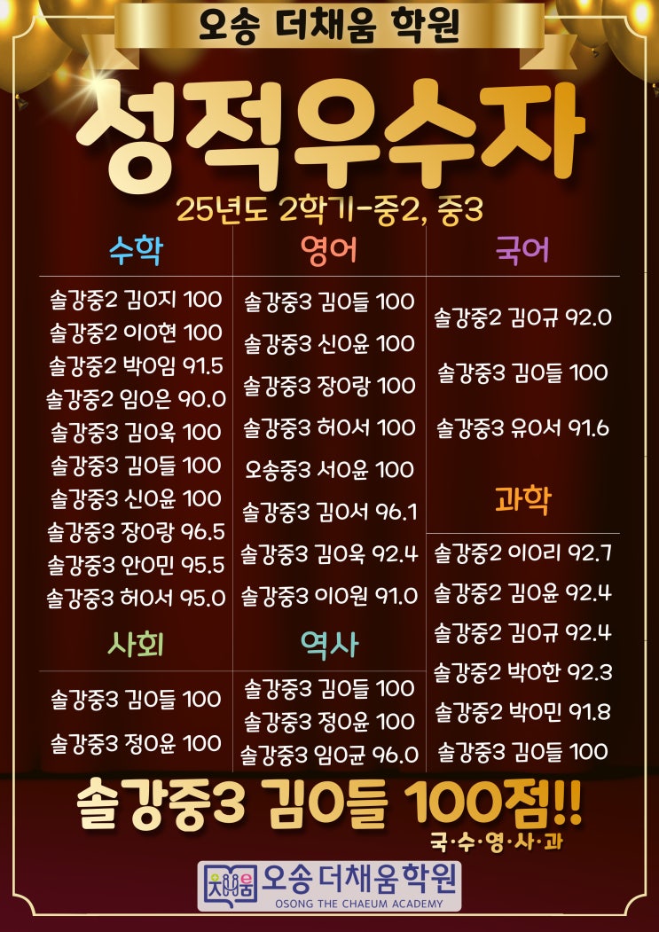 [오송더채움학원]2025년도 2학기 성적 우수자