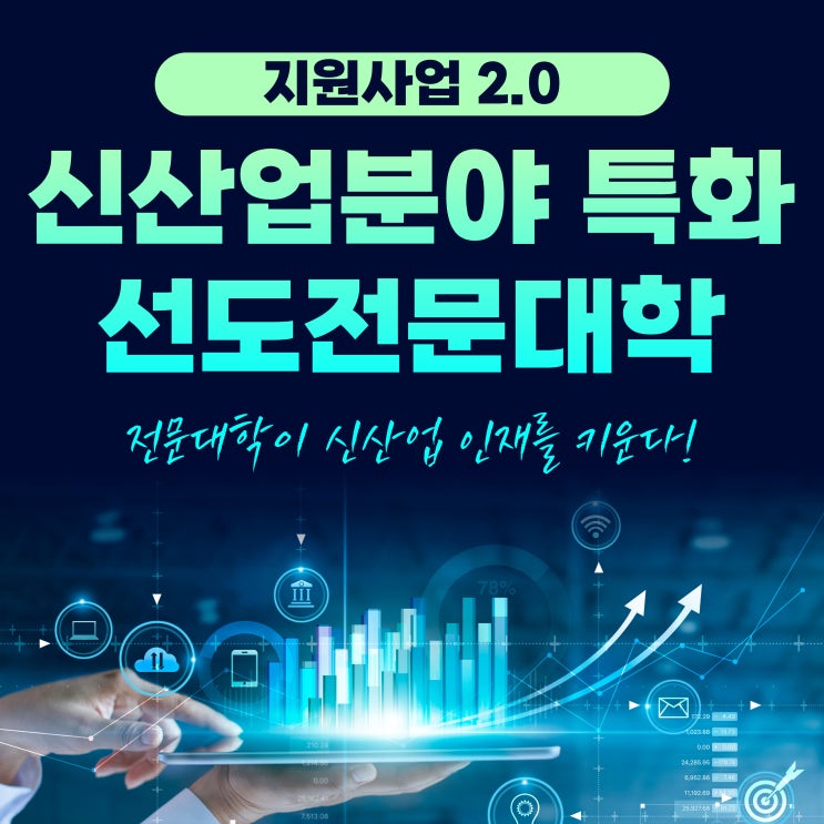 빠르게 변화하는 시대! 인공지능·로봇·스마트팜·친환경 에너지·빅데이터 등 새로운 사업 분야가 성장하고 있습니다. 우리나라 5대 유망 신산업 분야 인력 규모는 2020년 약 24만 명 ➔ 2030년 약 38만 명으로 증가 할 것으로 전망됩니다. 하지만 산업 현장에서는 여전히 전문 인력이 부족하고, 전공과 실제 직무가 맞지 않는 ‘미스매치’ 문제가 계속 발생하고 있습니다. 이 문제를 해결하기 위해 교육부가 추진하는 사업이 바로 신산업분야 특화 선도전문대학 지원사업 2.0 입니다! 이 사업에 대해서 간단히 설명하면, 전문대학을 신산업 인재 양성의 거점으로 육성하는 3년짜리 국가 지원 사업이라고 할 수 있습니다. (2024.03 ~ 2027.02) 이....... <img src="https://blogthumb.pstatic.net/MjAyNjAyMjNfMyAg/MDAxNzcxODE0ODg0ODIy.oELi-2dkRzf5SWAgs8CmOpGUSLao4weJhwUU57qBu_8g.1Ii51UGIM9BcJCwJToIb-2QEA-EEaNYQHs-QbZ_4Fvog.JPEG/001.jpg?type=s3" />