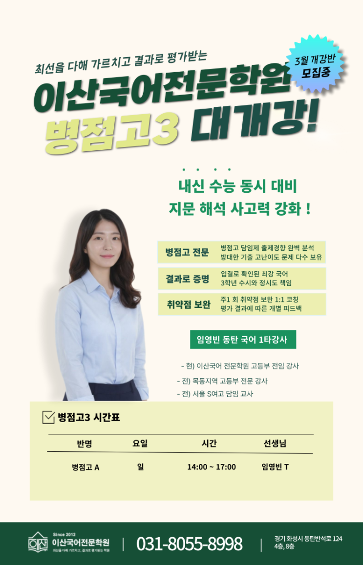 2026학년도 병점고 3학년 국어 3월 개강 _ 이산국어 전문학원