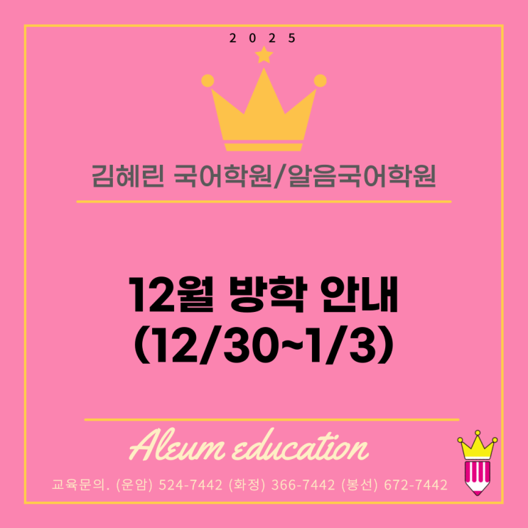 (12/30-1/3) 김혜린국어(알음국어) 12월 방학 안내