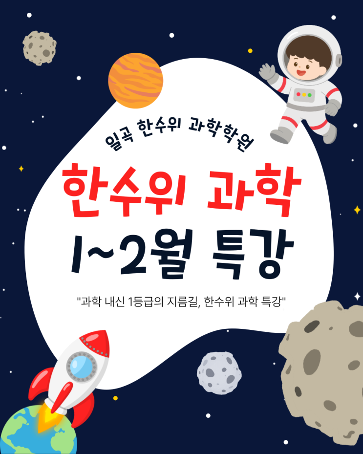 일곡동 과학학원 한수위 과학 학원 제4039 호 안녕하세요. 일곡동 과학학원 한수위 과학학원입니다. 2026년 1월~2월 진행되는 겨울방학 특강 시간표 안내드립니다. 과학 내신 1.등.급의 지름길, 일곡 한수위 과학 특강 * 고1 특강반(주 5일 – 7주) - 매 수업 시작 전 테스트 - 수업 후 재복습 가능한 복습 인강 제공(조율 필요) - 매주 누적 테스트 시험지 제공 및 풀이 영상 제공 - 학생별 관리 선생님 배정 후 학생의 학습량에 따른 보강 시행 * 고2 물화생지 특강반(주 2회 – 8주) - 수업 후 재복습 가능한 복습 인강 제공(조율 필요) - 매주 누적 테스트 시험지 제공 및 풀이 영상 제공 - 보강 선생님을 통한 주말 문제 풀이 * 고3 수능 대....... <img src="https://blogthumb.pstatic.net/MjAyNTEyMzBfMjAx/MDAxNzY3MDU0MjkwNjc1.yXSnH6wniQeLCkDDzYrRbDcEuyNAGmlxyWaG-ygPYfMg.WN1Mb2kzYfqF3A1XbydMF4Y8AI2R6zN2FfBHHiGDrzMg.PNG/002.png?type=s3" />