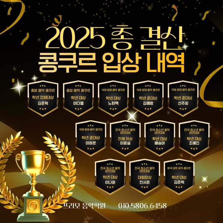 프리모 음악학원 2025✨콩쿨 성과✨ 한눈에 보기-소담동 피아노학원