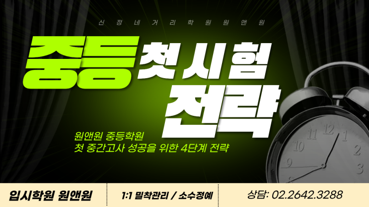 [신정네거리학원] 예비중등1학년"첫 중간고사 성공을 위한 4단계 핵심 전략"<강력추천학원>원앤원