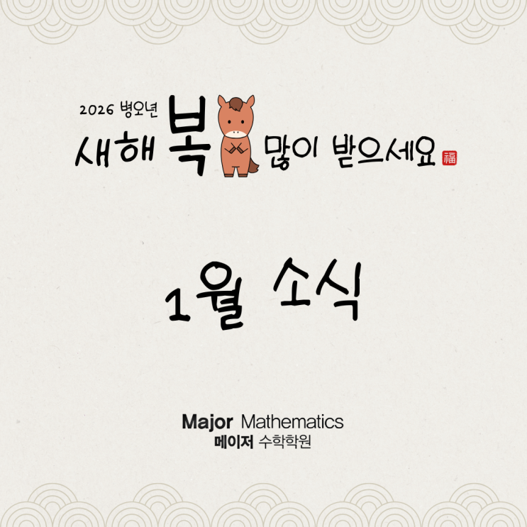 상세일정은 아래 링크에서 확인해주세요!. ① 휴관일 2025년 12월 31일(수)은 재량휴업일로, 2026년 1월 1일(목)은 신정으로 휴관합니다. 일정 확인하시고 착오 없으시길 바랍니다. ② 예비고1 모의평가 ③ 예비고3 수강료 현재 고2 학생들은 "2026년 1월"부터 예비고3으로 고3 수강료가 적용됩니다. ※ 주 3회 이상 수업은 문의주시기 바랍니다. 메이저수학학원 031-705-0777 카카오채널 【분당 메이저수학학원】 *상담 및 문의는 평일 오후 2시~10시, 토요일 오전 9시~오후 3시까지입니다. <img src="https://blogthumb.pstatic.net/MjAyNTEyMTlfMjcw/MDAxNzY2MTM4NzY1Nzg0.ObC7HlyvCn82S4or_PmgJ3h-WMXAUxBc2k4MoMTMMcYg.o91cwDyciD5Wa_AHKgYHX05UocreYe-MdmWe8nxo7iAg.PNG/1%BF%F9%BC%D2%BD%C4.png?type=s3" />