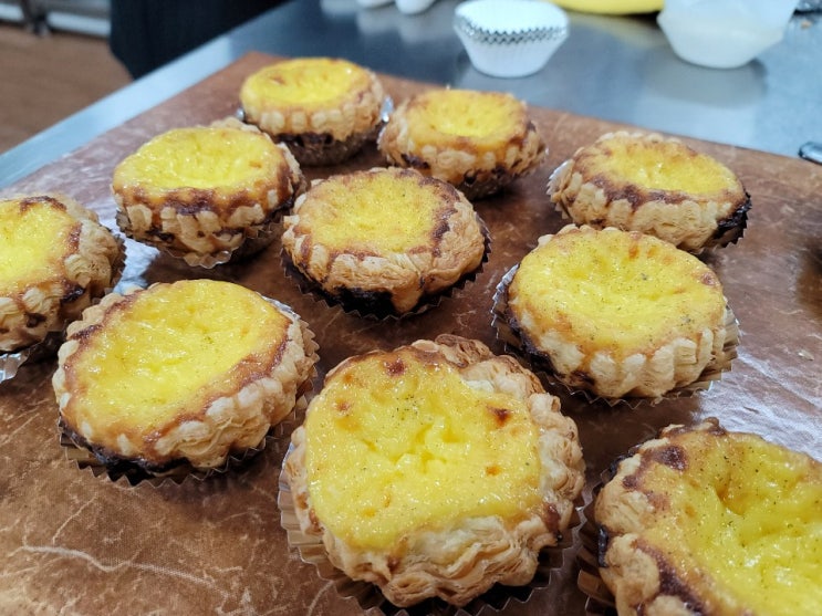 안녕하세요, 제이와이엠입니다. ^^ 이번 주 홈베이킹 수업은 에그타르트 입니다. 기존 에그 타르트 안에 사과 + 시나몬 필링을 넣은 시나몬 애플 에그타르트 입니다. 집에서 하실 때는 파이지를 따로 반죽해서 사용하셔도 되고, 틀이 없거나 번거롭다고 생각이 들면 시중에 판매되는 냉동 생지를 사용하셔도 됩니다. 기본 필링을 붓기 전 시나몬 + 사과 필링을 넣어 줍니다. 시나몬을 좋아하지 않는다면 생략해서 기본 에그타르트로 만들면 됩니다. (왼) 반죽한 파이지 사용, (오) 페이스트리 냉동 생지 사용 파이지의 종류에 따라 다른 식감으로 즐길 수 있어 좋습니다. ^^ 수강 문의는 1. 전화 문의 : 031) 486-8006 2. 댓글로 문의 남기시면 빠....... <img src="https://blogthumb.pstatic.net/MjAyNjAyMTFfNCAg/MDAxNzcwNzkyMzkwNTg5.LMjBzaCo-qNiMwASEqDQvB5iI95BeA5Tin29qJZ8sMsg.B6ddPZ0j3A0pBfrIiGszNMqG0g84A4YG6Bysy-u9imkg.JPEG/%C6%E4%BD%BA%C3%F2%B8%AE%BF%A1%B1%D7%C5%B8%B8%A3%C6%AE_%285%29.JPG?type=s3" />
