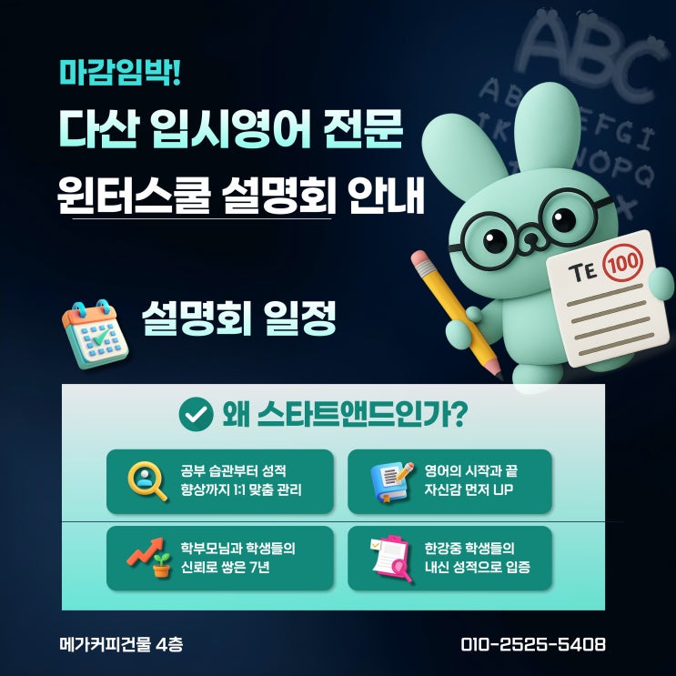 [마감임박] 다산 입시영어 전문 스타트앤드 영어학원 윈터스쿨 설명회 안내