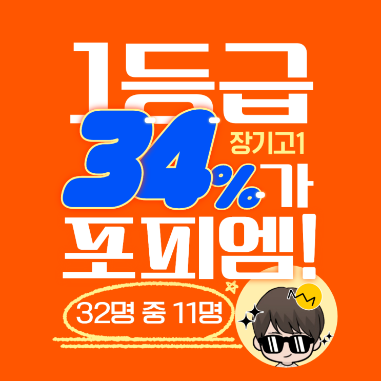 장기고 1학년 - 2학기 1등급 32명 중 11명, 34%가 포피엠!