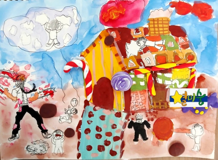 #김포아동미술#아동상상화#구래동초등미술#동화미술#한가람초미술 좋아하는 체인소맨도 나오고 과자집에 구멍을 뚫는 아이, 먹는 아이, 막대 사탕 나무를 부러뜨려 먹는 아이, 솜사탕 구름에서 떨어지는 아이~~~ 재밌는 아이디어가 가득하네요~^^ <img src="https://blogthumb.pstatic.net/MjAyNjAyMjBfMTk0/MDAxNzcxNTg1NDgwMDI0.L_lK-TWPMwAOZdwiCVDC6UAtFjE1-h1XlkkpDH5v_PMg.LHsYfAaBwU6oGQnPuaSsIi2UQK_Vtt7rcCEkXimKB10g.JPEG/900%A3%DF1771585478489.jpg?type=s3" />