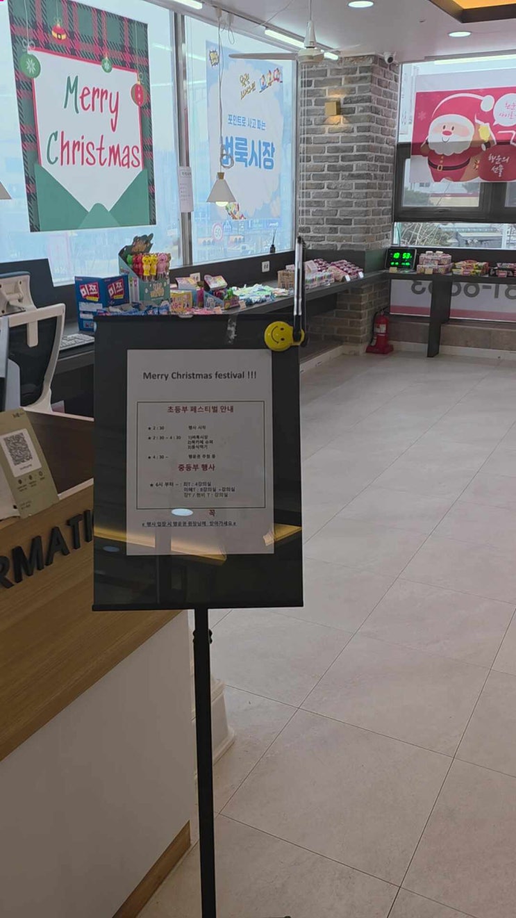 한번 둘러보고 가실게요^^ 여기는 용수학 마트 오픈전 입니다 애들아! 오늘을 맘껏 즐겨볼까? 우리 아이들이 1년동안 열심히 공부하고 과제도 열심히 출결도 최선을 다해서 모은 포인트로 친구들이 내어놓은 벼룩시장도 구입하고 학원에서 준비한 장난감! 과자! 학용품도! 골라골라 즐거운 시간!! 친구들이 준비한 벼룩시장 아주 성황리에.판매완료 맛있고 멋진 상품도 가득가득^^ 선생님이 준비해준 분식도 너무 맛있어요^^ 친구들아 모여모여 사진도 찰칵^^ 애들아 모여!! 오늘의 행운권의 주인공은☆ 행운의.기회를 놓친 친구들은 2026년을 기대 해보아요^^ 2부는 중등부 형님들의 먹방타임 중등부 형님 누나들은 한참 사춘기로 예민한 시기(?....... <img src="https://phinf.pstatic.net/image.nmv/blog_2025_12_20_1980/aSwVytbz2w_03.jpg?type=f480x480" />