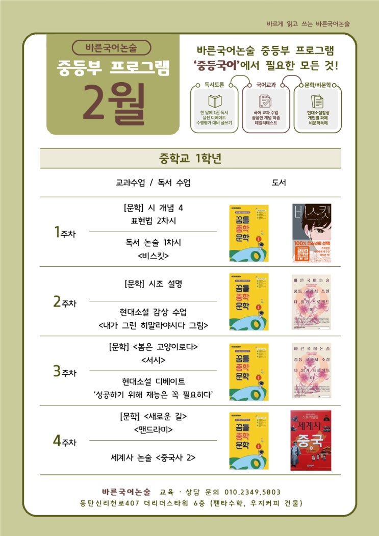 바른국어논술 2월 중1 · 중2 커리큘럼