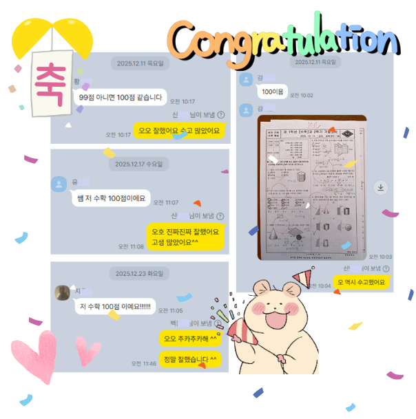 빠밤~ 우리 중등친구들 100점 소식!!