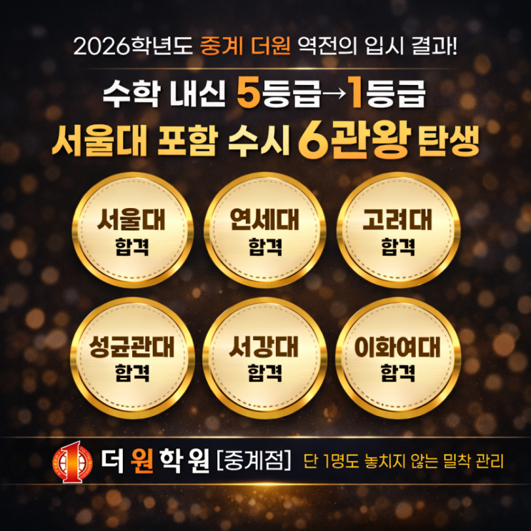 중계동 수학학원 더원, 5등급에서 서울대 6관왕까지! 26학년도 역전의 입결 공개!