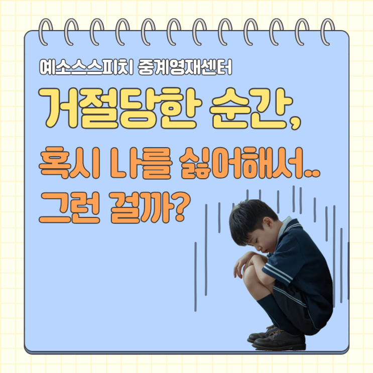같이 하자고 했다가 싫다고 하면 어떡해… 친구가 나랑 놀기 싫다해서 너무 창피해…” 아이들은 생각보다 자주 이런 걱정을 합니다. 거절은 누구에게나 일어나는 자연스러운 경험이지만, 아이들에게는 나를 싫어해서 그런 건 아닐까 하는 불안으로 크게 느껴지기 때문입니다. 그래서 시도조차 하지 않거나 무조건 맞추며 자신의 마음을 숨기기도 합니다. 하지만 건강한 관계와 자신감을 위해 아이에게 꼭 필요한 능력은 ✔ 거절을 받아들이는 힘 ✔ 올바르게 거절하는 기술 이 두 가지입니다. [ 거절 당했을 때 대처법 ] ➊ 이유 묻기 “왜 싫어?” X “다른 약속 있어?” O 상황을 확인하면 거절을 ‘나 때문’으로 받아들이지 않게 됩니다. ➋....... <img src="https://blogthumb.pstatic.net/MjAyNjAyMTRfMjgg/MDAxNzcxMDQyMjU4ODYw.0kAFZCh_pSUUmBqOaz48KtwNK1bhTugPpQ15VsVkOBYg.XujKihYWHWbKiXiP3b41MRDhFc3ol2VJOrs7uEwftHQg.PNG/1.png?type=s3" />