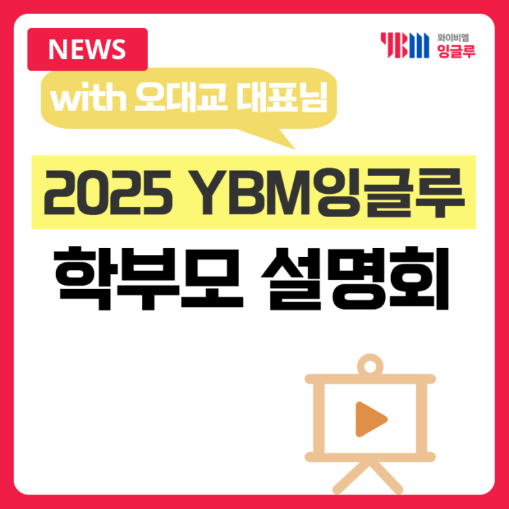 안녕하세요, YBM잉글루입니다~! 지난 12월 17일(수) 저녁 8시, ‘2025 YBM잉글루 LIVE 온라인 학부모 설명회’가 성황리에 진행되었습니다. 이번 설명회에는 대치동 25년차 입시 컨설턴트이자 대표 강사, 입시 로드맵 전문가 오대교 대표님께서 연사로 참여해 초중등 학부모님들께 현실적이고 구체적인 입시 로드맵을 전해주셨어요! 특히 이번 강연은 오대교 대표님께서 일타맘에서도 미처 공개하지 못했던 내용을 중심으로 초중등 시기부터 어떻게 준비해야 하는지를 명확하게 짚어준 시간이었어요. 다양한 매스컴에서 섭외를 받으시는 대표님이신 만큼 학부모님들께 정말 인기가 많았답니다! 설명회 주요 내용 이번 강연은 '성공적인 초중....... <img src="https://blogthumb.pstatic.net/MjAyNTEyMjRfMjE2/MDAxNzY2NTU3OTY5NzU2.s3QaF-SBMeEMEswyzn6Bo3zEN_TiQClj8LPjjDTVqYUg.RTq5Q76jV5S6XRyaG3Uo4HJxrznuw_1H3yO2R6cuVzAg.PNG/%C3%E6%C3%BB%C1%F6%BF%AA_%BB%E7%BE%F7%BC%B3%B8%ED%C8%B8_%283%29.png?type=s3" />