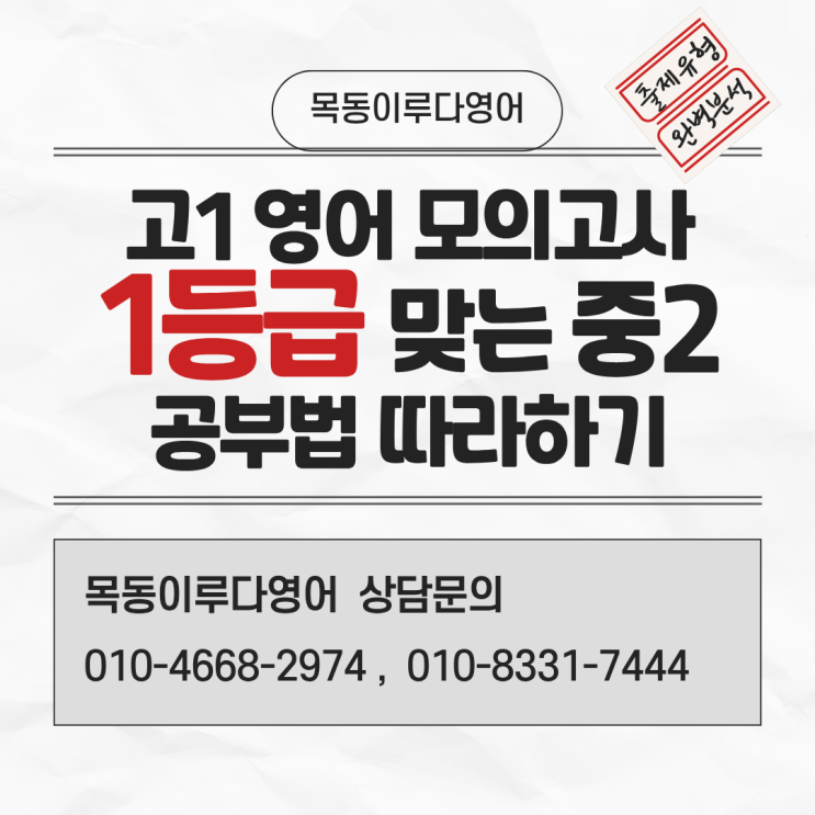 [목동이루다영어] 고1 영어모의고사 1등급 받는 중2, 공부법 살펴보기