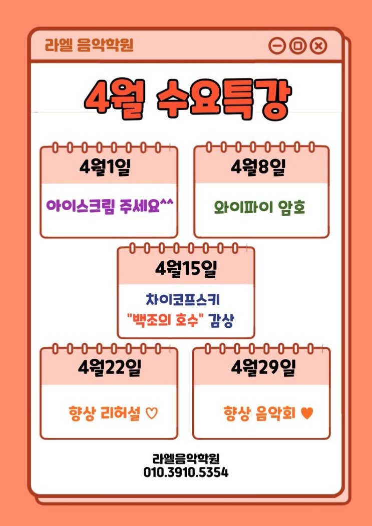 4월 라엘 수요특강 스케줄 ♥