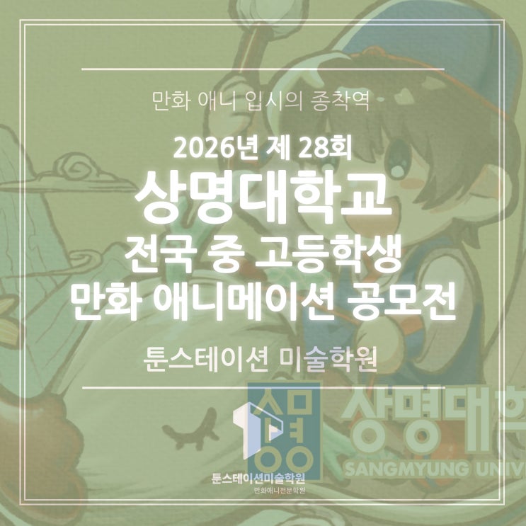 [강서 만화학원 툰스테이션]2026 제28회 상명대학교 전국 중·고등학생 만화·애니메이션 공모전[강서 발산역 발산동 입시미술 만화 애니 웹툰 학원]