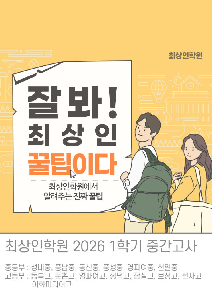 성내동 영어 수학 학원|최상인학원 2026 1학기 중간고사 내신 대비 안내