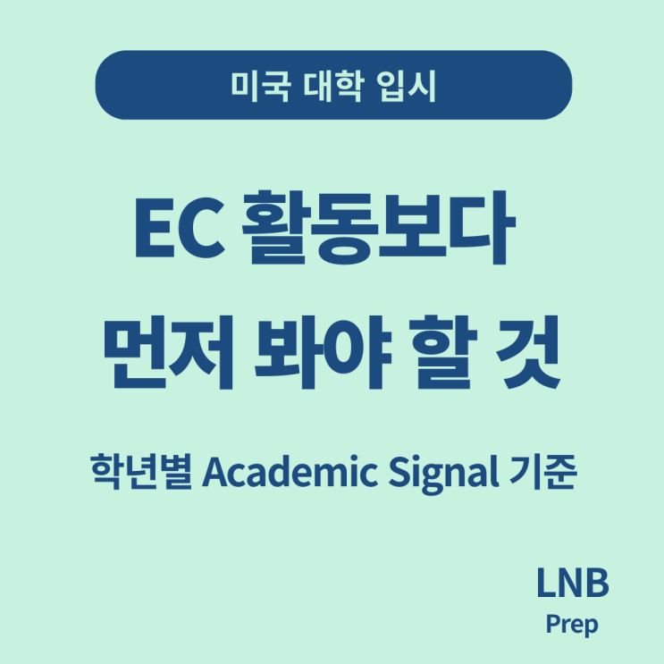 미국 입시 준비, 활동보다 먼저 봐야 할 것 학년별 Academic Signal 판단 기준 (지금 위치가 애매해지는 시점) 성적표가 나온 직후, 또는 학교 카운슬러와 상담을 하고 나온 날. 부모님 마음에 비슷한 생각이 겹칩니다. “성적은 나쁘지 않은데, 이걸로 충분한 건가?” “활동을 더 해야 하나, 아니면 성적을 먼저 잡아야 하나?” “다들 말이 다른데, 뭘 기준으로 판단해야 하지?” 이 글은 무언가를 더 하라고 권하는 글이 아닙니다. 지금 우리 아이가 어떤 기준으로 평가받고 있는지, 그 판단 기준을 정리하기 위한 글입니다. 왜 이 시점에 더 헷갈릴 수밖에 없을까 학교에서는 활동 이야기를 합니다. 주변에서는 “요즘은 EC가 중요하다”고....... <img src="https://blogthumb.pstatic.net/MjAyNTEyMjZfNjIg/MDAxNzY2NzIwNjIyNDg2.A0FeKwZvL-jEIgX7W2dY_tJEyWPlb_o8mJi8Asg-z7Qg.X9z_idLs14pWyNQaQmI1A9E5-x1YFdz65gnNpB1FFp0g.PNG/5%BA%D0_%C0%CC%C7%D8%C7%FC_%281%29.png?type=s3" />