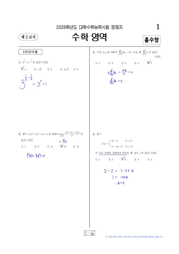 2026수능수학 공통영역풀이