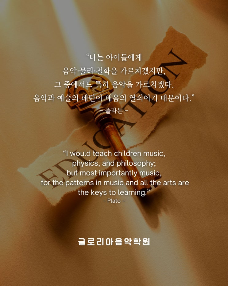플라톤이 말했다 – “배움의 열쇠는 음악이다” 부모라면 왜, 자녀에게 음악교육을 먼저 생각해야 할까요? 우리는 아이 교육을 이야기할 때 대부분 “국어, 영어, 수학”부터 떠올립니다. 하지만 고대 철학자 플라톤은 전혀 다른 이야기를 남겼습니다. "I would teach children music, physics, and philosophy; but most importantly music, for the patterns in music and all the arts are the keys to learning." – Plato "나는 아이들에게 음악·물리·철학을 가르치겠지만, 그 중에서도 특히 음악을 가르치겠다. 음악과 예술의 패턴이 배움의 열쇠이기 때문이다." 플라톤이 강조한 것은 단순히 '예쁜 소리를 내는....... <img src="https://blogthumb.pstatic.net/MjAyNjAxMTNfNDcg/MDAxNzY4MjY1Mjg0Njg3.nYuOdo-4d8VPlfS1SuNsUcj4yKRfEVUy0JpPzTqTQa8g.1JOVHmCvZKYw7L8nnmkyzJ-9dtCqH-JxOxGFBAbgAS4g.JPEG/KakaoTalk_20260113_094708818.jpg?type=s3" />