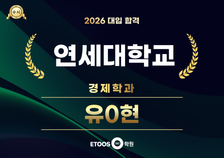 수시로 연세대학교를 입학한 학생의 수기를 올려봅니다 아래의학생은 2025년 12월23일부터 2026년 11월13일까지 인천송도독학재수학원 이투스247학원에서 생활을 한 학생입니다 학교에서 대부분의 시간으로 보내고 주말과 연휴 그리고 2학기 자유시간을 쪼개어서 학원 학교 생활을 병행한 학생입니다 인문계 학생임에도 미적분을 선택하여 백분위 94점을 득점하였습니다 수시로 연세대학교 경제학과를 합격하였지만 정시백분위로도 충분히 연세대 경제학과를 갈 성적입니다 이하 학생이 작성한 내용을 하나도 빼지 않고 올려봅니다 수능 공부 학습법 0. 과목선택 가이드 국어: 3-4등급이라면 고민할 것도 없이 화작. 독서, 문학에 더욱 투자해 점....... <img src="https://blogthumb.pstatic.net/MjAyNjAzMDFfMSAg/MDAxNzcyMzQxNTg2MTkw.LsNX6odbf3cKHUcXVI0Pgio11N9jlaWVS6eMPhPMGvQg.6h5OY1wpl1JgnmN9WK5m1jnkjlpz6pxPKsH7RYJyaugg.PNG/%C0%AF%BC%F6.png?type=s3" />