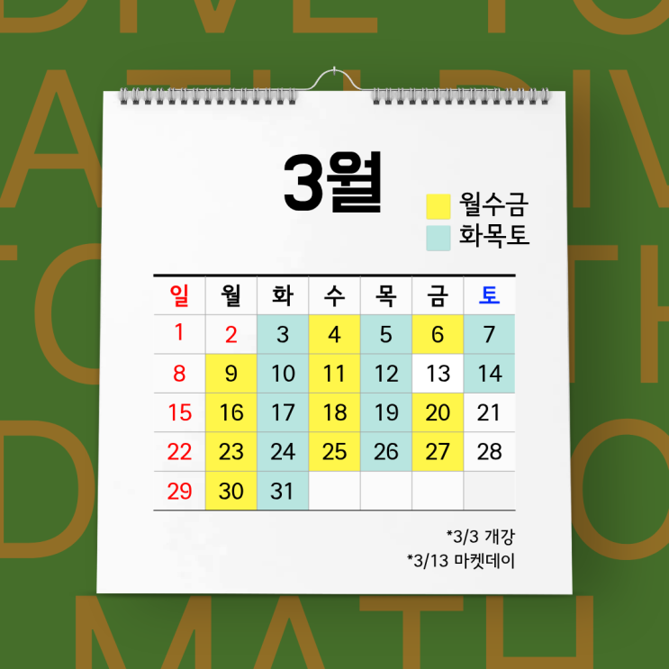 [학원소식] 디투엠수학학원 2026년 3월~4월 수업 일정 안내