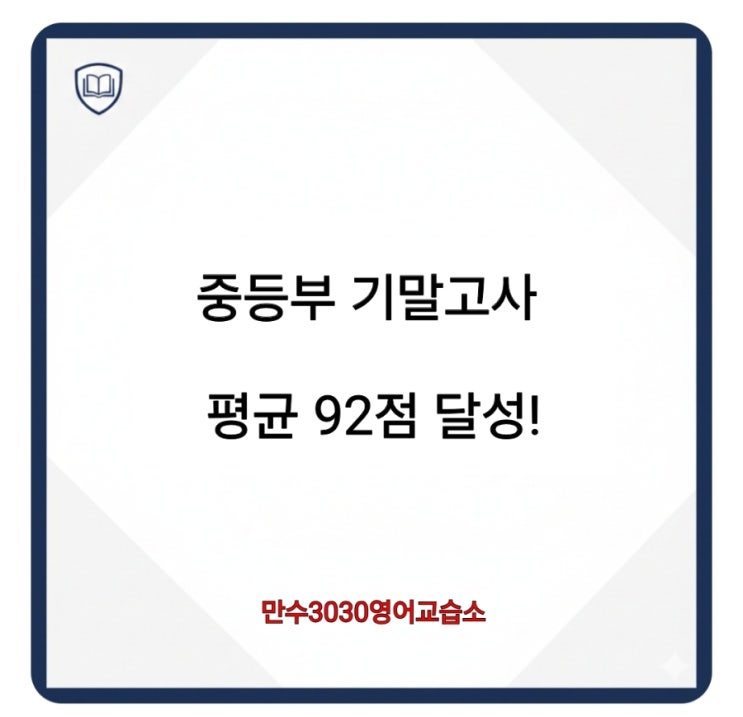 안녕하세요 만수동영어학원 삼공삼공영어입니다^^ 치열했던 중등부 기말고사가 마무리 되었습니다. 이번 시험에서도 우리 아이들이 정말 대견한 결과를 가져왔습니다! 선생님과 함께 열심히 고민하고 공부한 결과, 중등부 재원생 거의 전원이 고득점을 기록하며 기분 좋게 학기를 마무리하게 되었습니다. 믿고 맡겨주신 학부모님들과 끝까지 포기하지 않은 아이들에게 감사의 인사를 전합니다. 이번 시험에서 저희 중등부 아이들은 평균 92점이라는 놀라운 성과를 거두었습니다. 선생님의 개별 밀착 지도를 끝까지 믿고 따라와 준 아이들 덕분입니다. [삼공삼공 영어] 이번 기말고사도 거의전원 고득점! 소수정예 밀착 관리의 힘 "선생님....... <img src="https://blogthumb.pstatic.net/MjAyNTEyMjBfMjI4/MDAxNzY2MTYxOTkwNTEz.LfzN4WM27lYafQEqEC3DZEeweWe9X2W2eJlLhqyw25Eg.7e5KjTvJYOsHpZqEM1IxcPzt1nruI0lBXKqJm9_WdFYg.JPEG/900%A3%DFcu1766161844743.jpg?type=s3" />