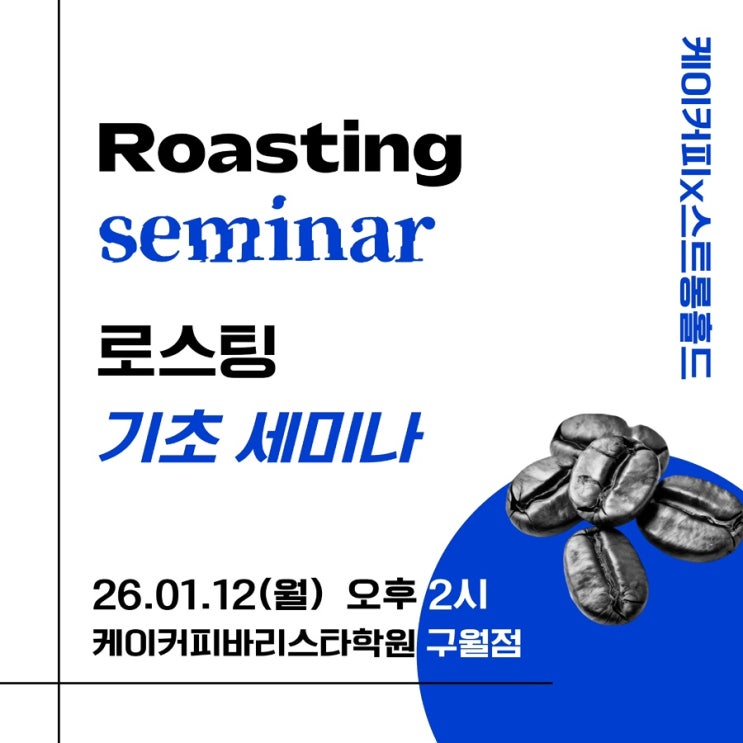 인천바리스타학원 인천카페창업 전문학원 케이커피바리스타학원 구월점에서 이번 세미나는 조금 특별한 세미나를 준비했습니다. 평소 로스팅에 관심은 있지만 막상 배우려고 하면 용어도 어렵고, 기계 설명부터 복잡하게 느껴져 시작을 망설이신 분들도 많으실 거예요. 이번 1월 12일, 스트롱홀드 한상우 과장님을 모시고 스트롱홀드를 활용한 로스팅 기초 세미나를 진행합니다. ⸻ 로스팅, 왜 이렇게 어렵게 느껴질까요? 많은 분들이 로스팅을 ‘기계를 다루는 기술’이라고 생각합니다. 하지만 실제로 로스팅에서 가장 중요한 건 기계보다 로스팅을 바라보는 기준과 흐름의 이해입니다. • 지금 이 단계에서 왜 온도가 중요한지 • 열이 원두에....... <img src="https://blogthumb.pstatic.net/MjAyNTEyMjZfMjI2/MDAxNzY2NzM2MDQzODkx.Z505lphmiVTYpWWfUbuqfCvpsXea0-Iqz4hDwUwR33wg.lvET6XgGscpok0-AfXR0oHD1PLY5PS7XoZywbz_wpkEg.JPEG/IMG%A3%DF3115.JPG?type=s3" />