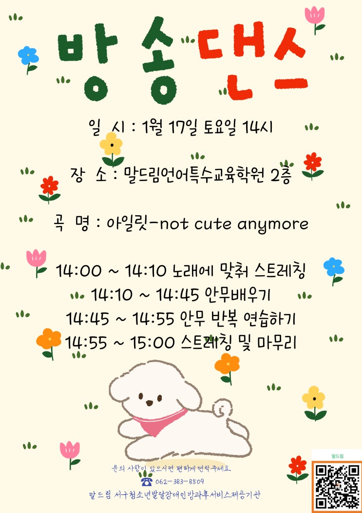 말드림 26년 1월 17일 '방송 댄스' 수업 공지사항