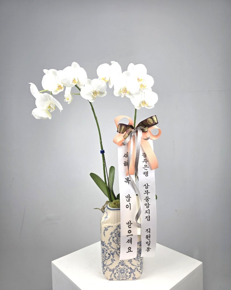#디자인휴먼_플라워 shop - 김대중컨벤션센터1층 #디자인휴먼_반려식물 - 판매완료 #서양난_호접난 광주은행 상무중앙지점의 직원분들께서 오더주셨어요. 신년 인사 선물로 어울리는 서양난의 단아함은 화려함보다 절제된 품격에서 빛을 발합니다. 곧게 뻗은 꽃대 위로 차분히 피어난 난꽃은 새해의 시작처럼 맑고 정갈한 기운을 전하며, 군더더기 없는 선과 여백의 미가 보는 이의 마음까지 고요하게 합니다. 화이트와 은은한 색감의 꽃잎은 순수한 시작과 변함없는 신뢰를 상징하고, 단정하게 묶인 리본과 축하 문구는 격식을 갖춘 축원의 마음을 담아냅니다. 서양난은 오래도록 꽃을 유지하며 공간에 품위를 더해주어, 새해의 시간 속에서도 지....... <img src="https://blogthumb.pstatic.net/MjAyNjAxMDFfNDMg/MDAxNzY3MjcxMDUwOTI2.gdeI4WkP4wKCFyekz-FElPQKnJp6OSoaNrFGATEgq9og.OxXQ19wbPa2vKCFri36aLrGtaKG2U4ayzHrUOQxr9T8g.JPEG/900%A3%DF1767270974105.jpg?type=s3" />