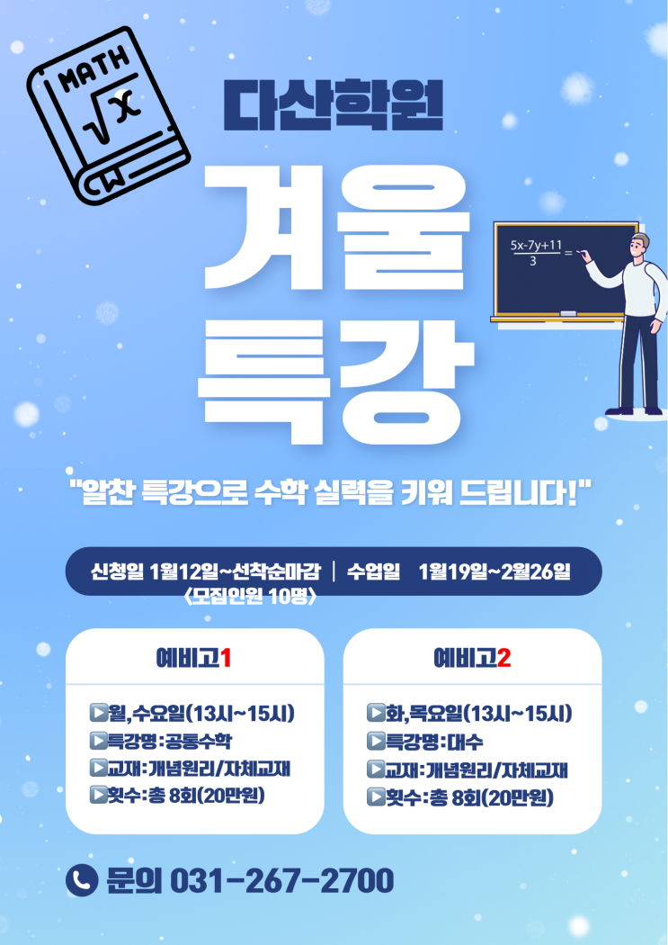 세류동 다산학원 겨울방학 수학특강!!