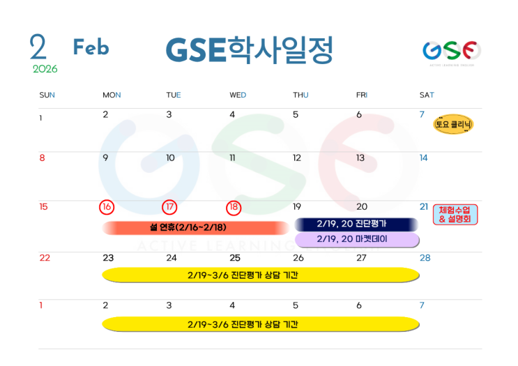 GSE어학원 2월 학사일정