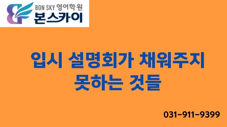 [후곡 본스카이 영어학원] “입시 설명회가 채워주지 못하는 것들” 입시는 설명회 같은 정보의 양이 아니라, 결국은 학원의 관리와 지도입니다.