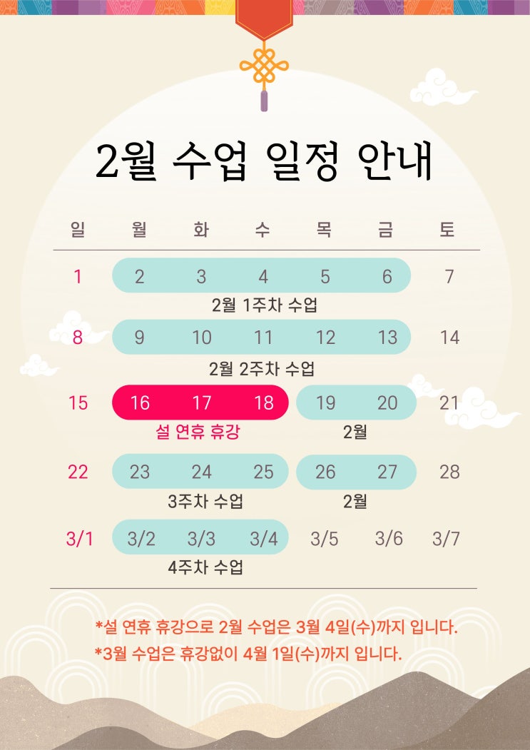 창의수학나무학원 2월 수업 일정 - 별내 초등 중등 수학학원